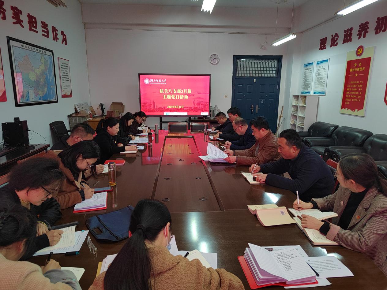 3月21日下午,机关第八党支部在科技大楼806会议室开展以“凝心聚力启新程 砥砺奋进谋发展”为主题的党日活动。活动由党支部副书记陈婷同志主持。