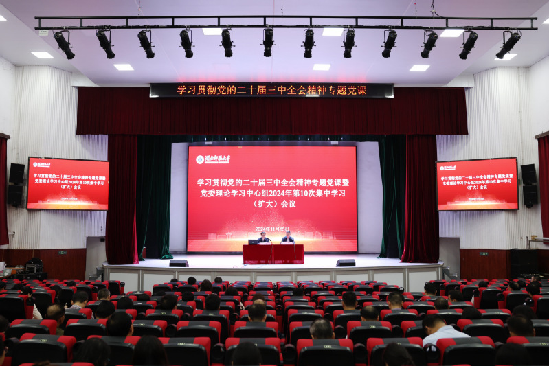 11月15日下午,学校举行学习贯彻党的二十届三中全会精神专题党课暨党委理论学习中心组2024年第10次集中学习(扩大)会。校党委书记李宏以“深学细悟全会精神 笃行实干抓好落实”为题面向全校党员干部宣讲党的二十届三中全会精神。校党委副书记马列军主持会议,全体校领导、全校副科级及以上干部参加学习。